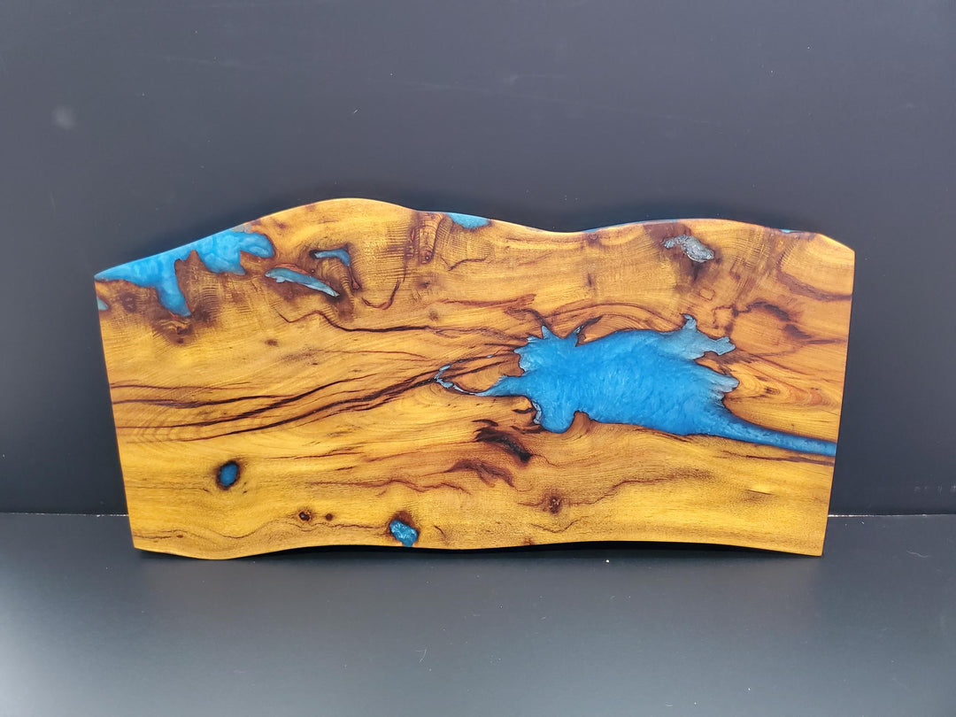 Live Edge Osage Orange with Ocean Blue epoxy Charcuterie board
